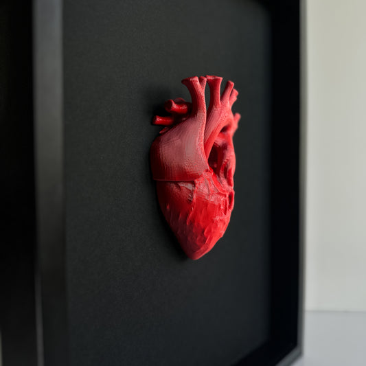 Heart 3D Anatomical - Realistic Heart Sculpture in a Deep Black Frame | Unique Wall Art and Medical Gift
